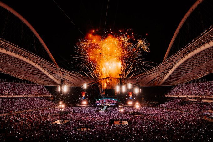 Po prawie rocznej przerwie Coldplay powraca do Europy, by kontynuować promocję swojego krążka Music Of The Spheres wydanego w 2021. A więc trasa trwa już 3 lata i końca nie widać. I dobrze. Dobrze też, że już podczas koncertów w Grecji zespół zagrał utwór z nadchodzącego albumu Moon Music! Przyjrzyjmy się najciekawszym momentom występów w Atenach.